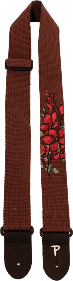 Perri's 2″ Red Floral Screen Printed Brown Cotton Strap with Leather Ends
