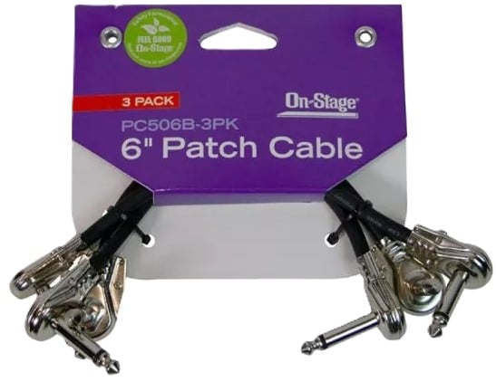Onstage PC506B-3PK 6" Patch Cable with Pancake Connectors - Black (3 Pack)