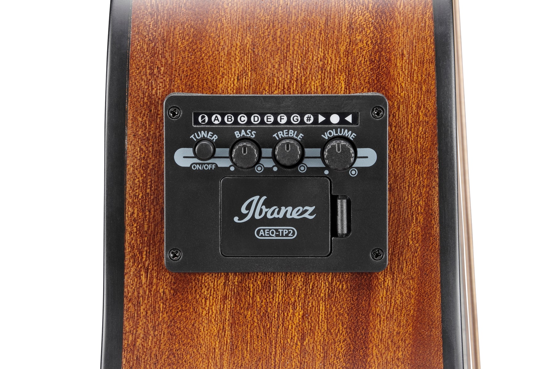 Equipped with an Ibanez T-bar Undersaddle pickup and an AEQ-TP2 preamp with Onboard tuner, the AAM54CE effortlessly translates its full-bodied acoustic sound to any amplification system, while the onboard EQ and tuner add a layer of versatility for the modern musician.