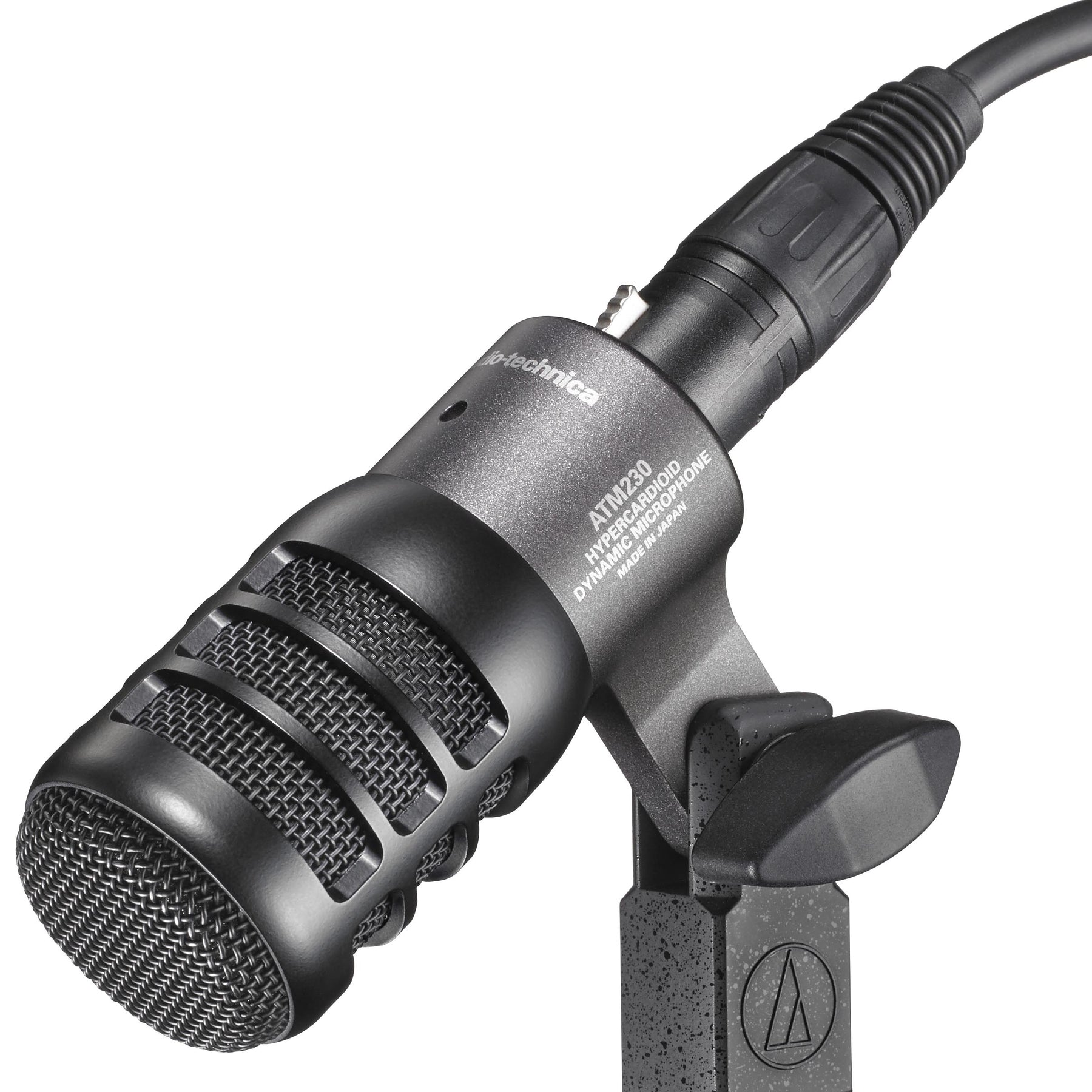 The compact ATM230 Artist Series instrument microphone is specially designed for use with drums. The micβs proprietary capsule excels in high SPL applications, delivering full, well-rounded audio with an exceptional low-end. The hypercardioid polar pattern keeps the focus on the sound source, directionality that is aided by the micβs low-profile design, which allows it to be placed in a wide variety of setups. All this makes the ATM230 ideally suited for miking toms, snare and other percussion instruments.