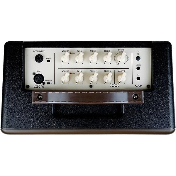 The VOX VX50 AG is a compact, lightweight and cutting-edge acoustic guitar amplifier with impressive 50 watts of output power and rich, natural tone courtesy of the Nutube-equipped pre-amp. Beyond its impressive sound, the VX50 AG provides both Instrument and Mic channels, each with their own independent EQs and on-board effects, and a host of input and output jacks, making it the perfect solution for gigging guitarists. Weighing in at only 9 lb., the VX50 is a fully-featured acoustic guitar amp that's perfect for all acoustic players.