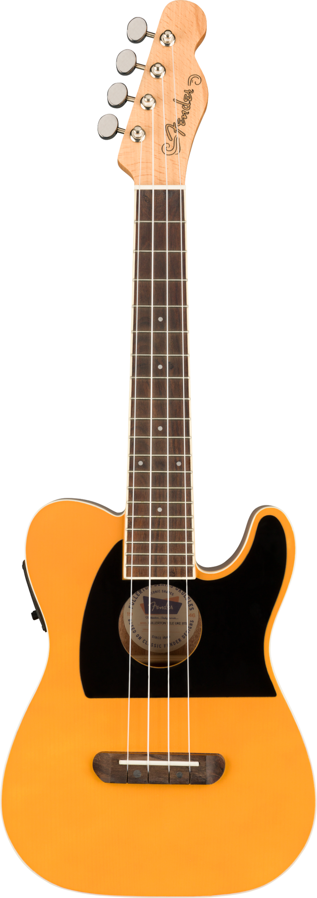 The Telecaster ukulele’s pickguard, signature finish color options, and 4-in-line headstock can only be categorized as quintessentially Fender. The Fullerton Telecaster is the perfect choice for the ukulele player looking to inject the spirit of rock ’n roll into every performance.