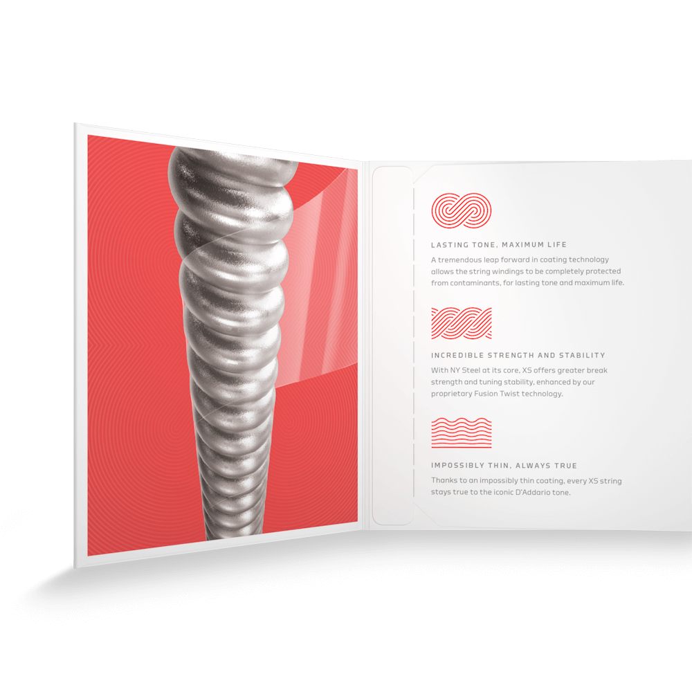XS is breathing new life into coated strings. With its ultra-thin film coating on every wound string and unique polymer treatment on the plain steels, XS offers our highest level of protection for maximum life with an uncommonly smooth feel. XS also features NY Steel high carbon core and plain string wire, along with our exclusive Fusion Twist, for incomparable break strength and tuning stability. XS is the most innovative coated string ever created.