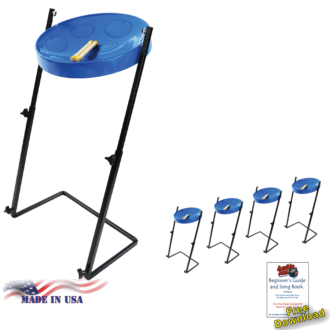 Jumbie Jam Steel Drum Educators 4-Pack - Metal Z-Floor Stands - Blue Pans (G)