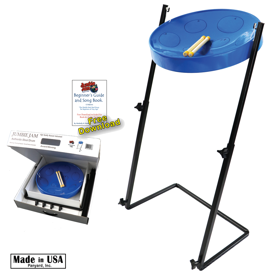 Jumbie Jam Steel Drum Kit - Metal Z-Floor Stand - Blue Pan (G)