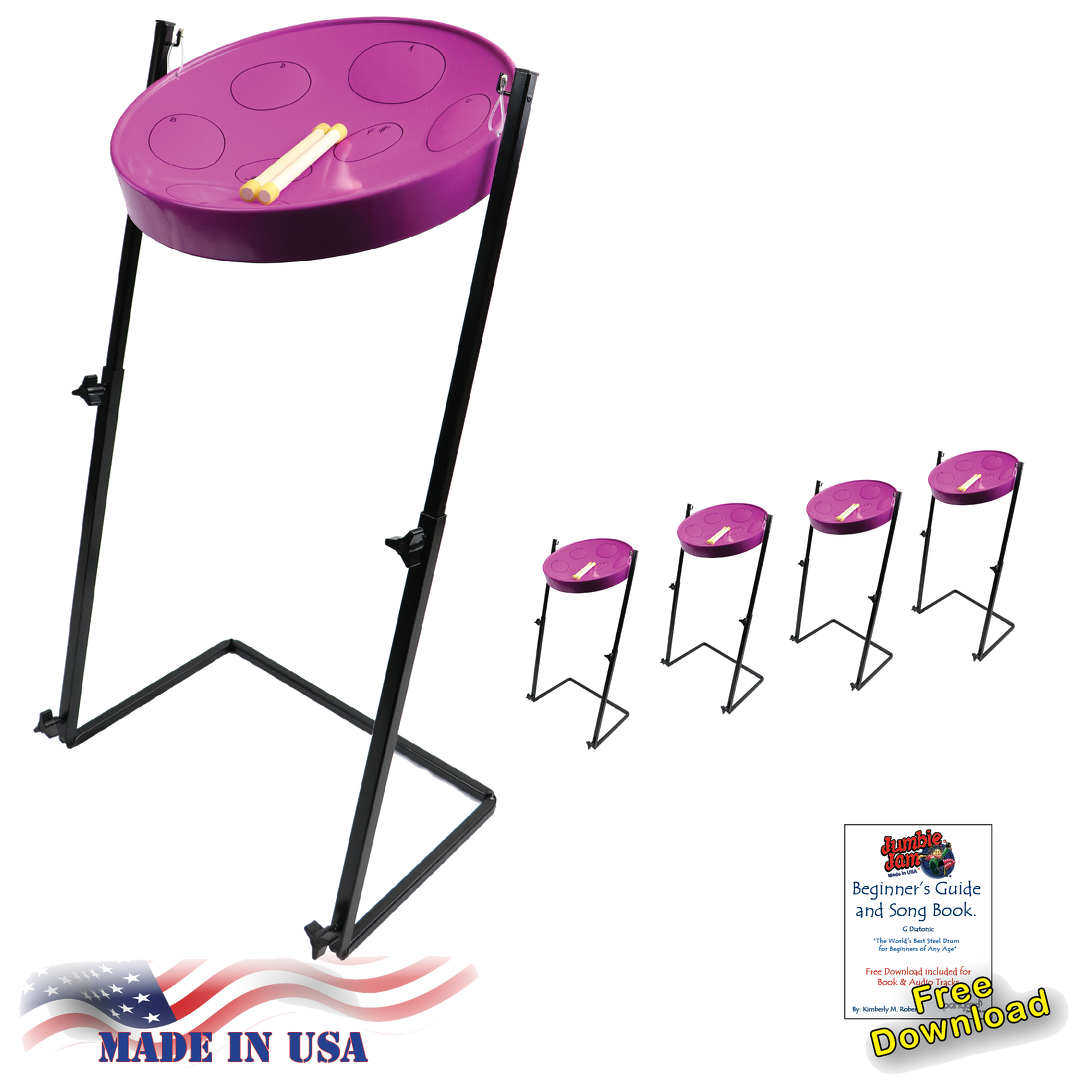 Jumbie Jam Steel Drum Educators 4-Pack - Metal Z-Floor Stands - Purple Pans (G)