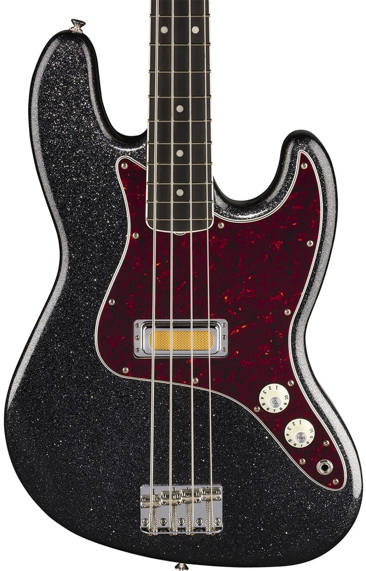 A maple neck and bound ebony fingerboard offer smooth playability with a classic feel. The white pearloid dot inlays provide a subtle nod to tradition, while the matching painted headcap and Black Sparkle finish elevate the look into something far more daring. Vintage-style lollipop tuners tie it all together with a functional, retro-styled touch that bass enthusiasts will appreciate.