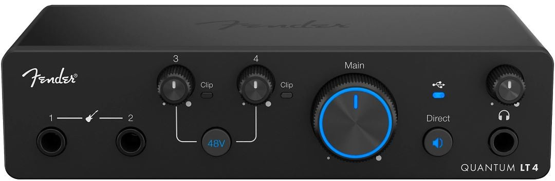 The Fender Quantum LT 4 expands your creative possibilities with two MAX-HD mic preamps, making it perfect for duos, ensembles, or creators who want more flexibility. Each preamp delivers 75 dB of class-leading gain, ensuring outstanding results with any mic. Fender-designed instrument inputs provide superior tone for guitars and basses, while balanced TRS outputs and a powerful headphone amp give you monitoring versatility.