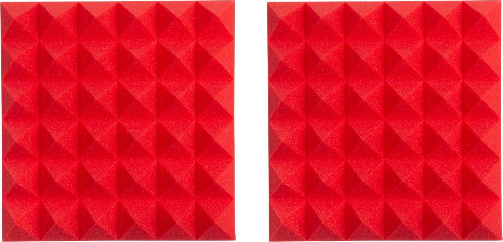 Pair of 2β-Thick Acoustic Foam Pyramid Panels 12βx12β β Red Color