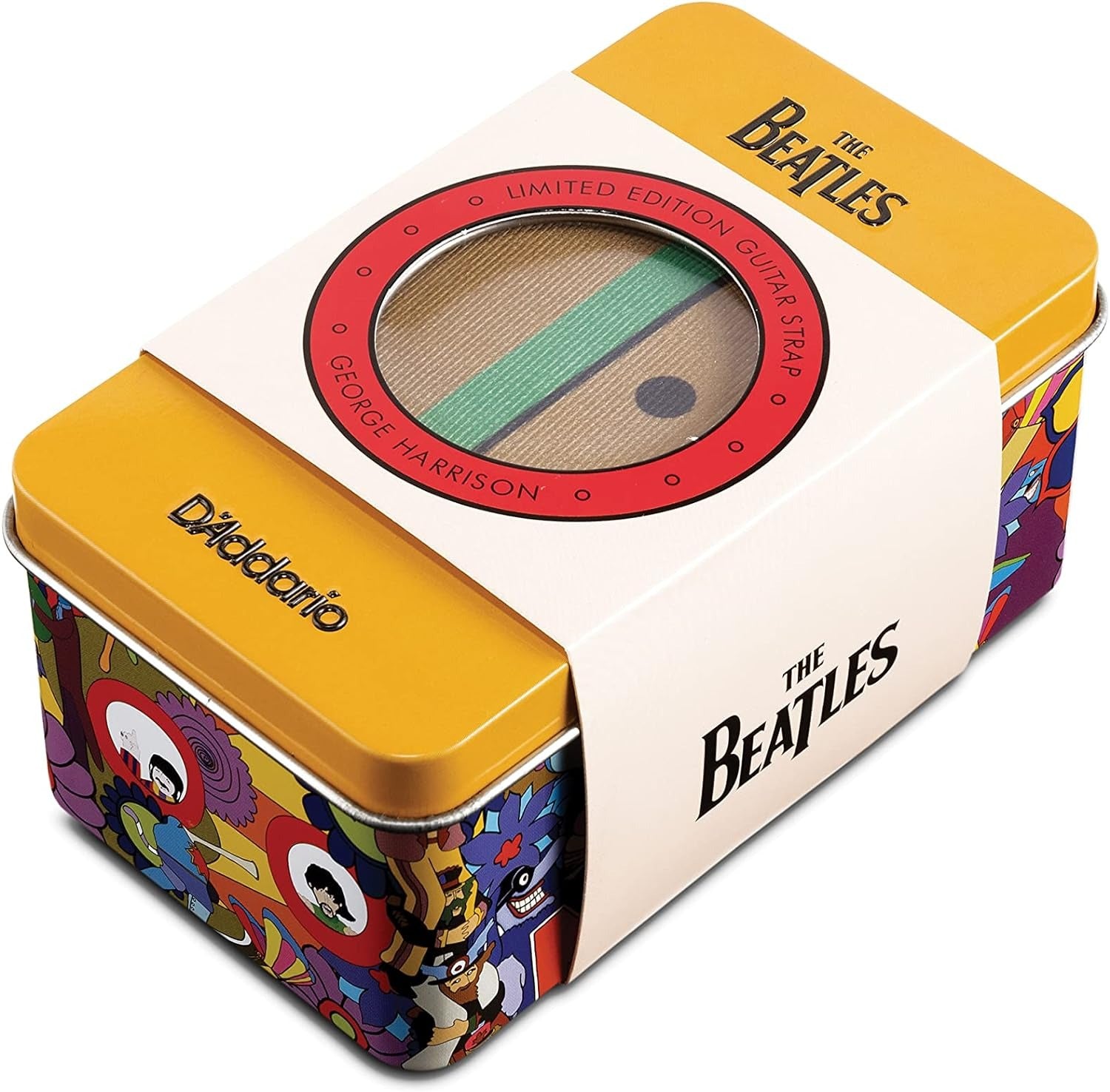 This limited edition woven guitar strap is an homage to George's illustrated look from the film in a collectible tin featuring art and characters from the movie. From "Love Me Do" to "Revolution," the Beatles were arguably the most creative, diverse, and influential band in pop music history.