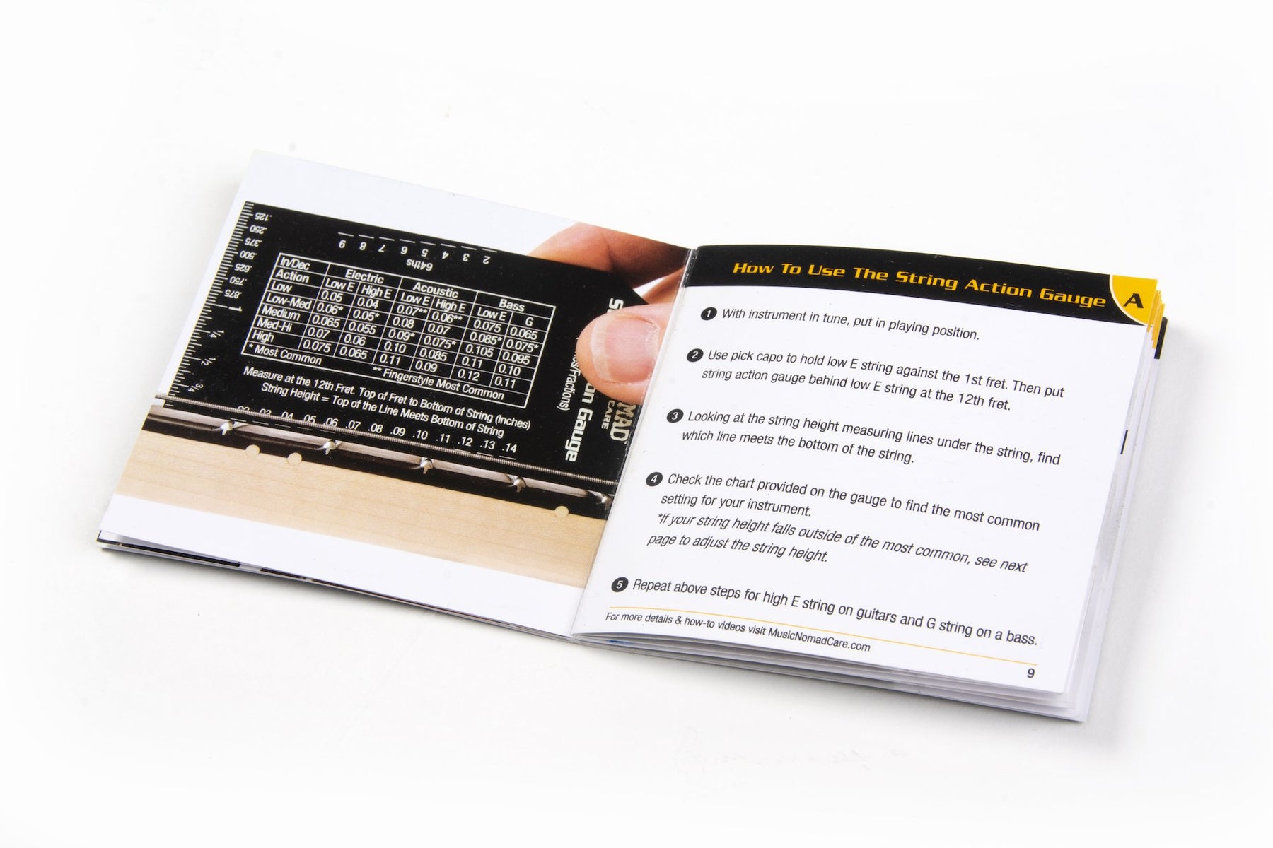 With our KISS method and our 6 pc. Setup Gauge Set you can check the vital areas of your instrument & use our tools (sold separately) to perform your own setup. Whether you have an Electric, Acoustic, Classical, or Bass Guitar, we give you the exact spec you need by instrument type, including instructions printed right on the product taking the guesswork out of each task. The Set includes a: Truss Rod Gauge, Pick Capo, String Action Gauge, 2 Radius Gauges, & Nut Height Gauge. We even include a 24 page instructional booklet & a nice carrying case. That's Music Nomad quality – raising the bar in equipment care.