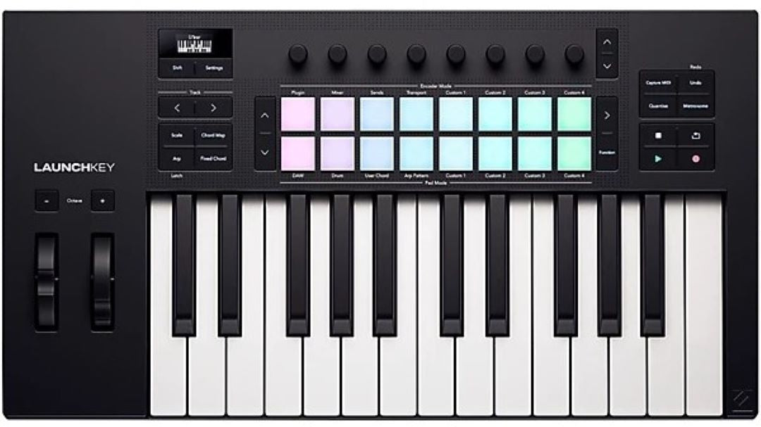 The Novation Launchkey 25 MK4 keyboard controller gives you seamless control over your favorite DAW. With its 25 synth-action keys and 16 drum pads, it lets you shape your music with precision and expression. Scale Mode locks the keyboard to a variety of scales so you stay in key, while the Arpeggiator creates intricate rhythmic patterns with just one note. The Launchkey 25 MK4 works with all major DAWs including Ableton Live, Logic Pro and FL Studio with no setup required. Perform and produce with this powerful yet compact controller.