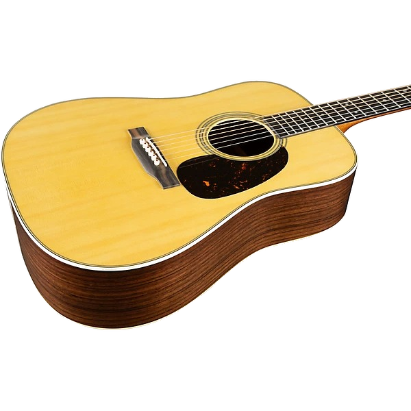 Handcrafted with a solid spruce top and solid East Indian rosewood back and sides, the D-28 produces a resonant voice thatβs beautifully balanced for all playing styles. The satin neck, featuring a Golden Era (GE) Modified Low Oval profile, high-performance taper, and 25.4" scale length, ensures smooth, effortless playability. With antique white binding, an ebony fingerboard with mother of pearl dot inlays, an ebony bridge with bone pins, and nickel open gear tuners, the D-28 blends timeless craftsmanship with modern playability. Available in a variety of gloss and satin options, the D-28 is the guitar you can trust to unleash the artist within.Β