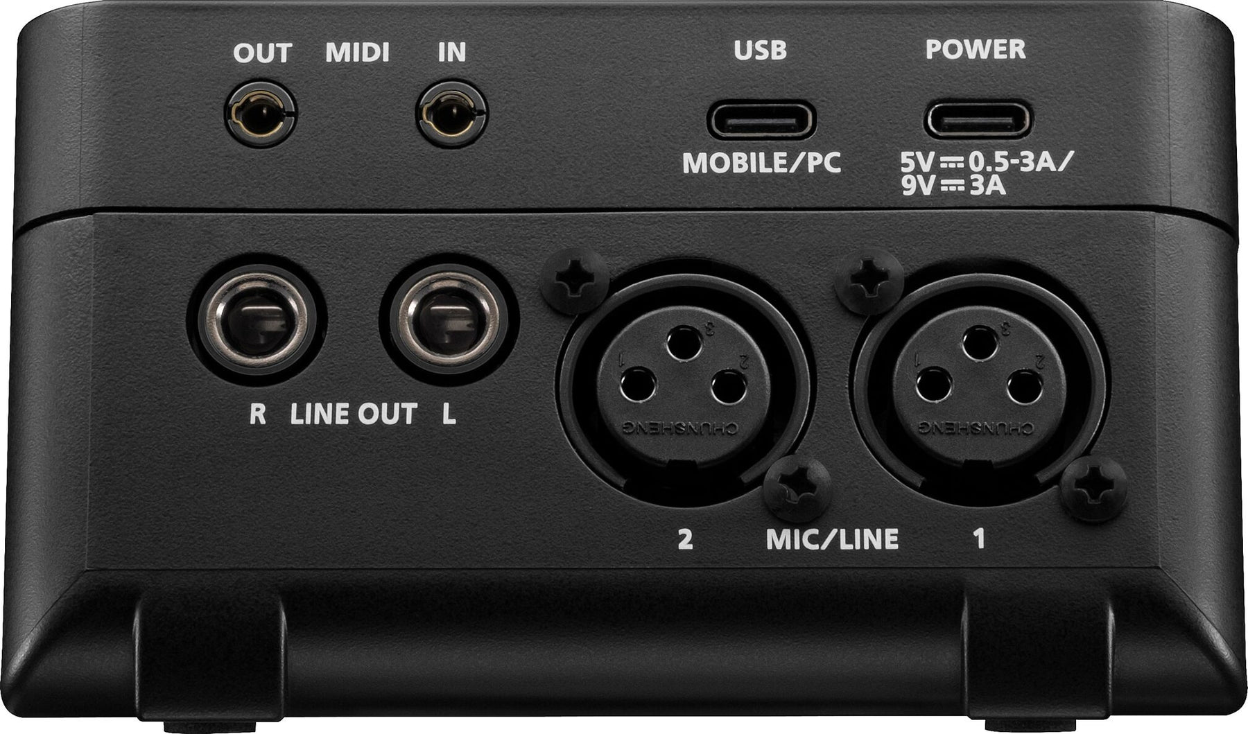 • Dual 3-pin XLR Mic/Line inputs feature 48V phantom power