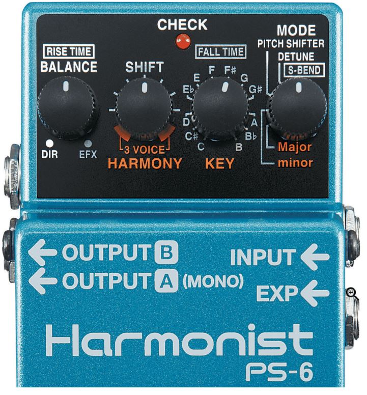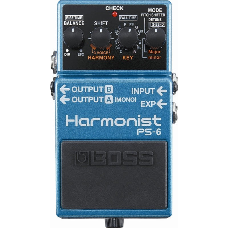 Meet the new BOSS harmonist, with four intelligent pitch-shift effects and three-voice harmony in one convenient unit. Among the effect modes are Harmony, Pitch Shifter, and Detune, plus the all-new Super Bend for authentic pedal-bending effects and wild three- and four-octave pitch sweeps. You can even control pitch with an optional expression pedal. The harmony function is fast and simple to use, and supports a variety of interval patterns. Its easy to create rich, three-voice harmony: choose a major or minor key, and set SHIFT to 3-VOICEthats it! The PS-6 Harmonist is an unbeatable combination of superior sound quality, ease of use, and powerful pitch effects, all under one hood.
