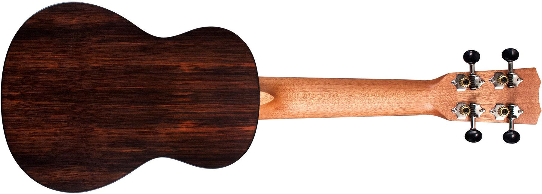 The 21 Series applies the most popular guitar soundboard wood (solid spruce) with an exotic striped ebony back and sides. The aesthetic is subtle and refined with a satin finish, timeless hand-inlaid wooden rope rosette, and matching purfling. Available in soprano (21S), concert (21C), tenor (21T), tenor cutaway acoustic-electric (21T-CE), and baritone (21B).