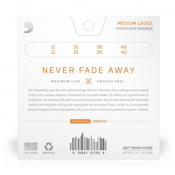 D'Addario XSM1140 XS Mandolin Set Phosphor Bronze Medium
