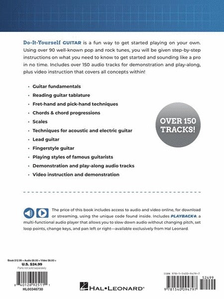 Do-It-Yourself GuitarΒ is a fun way to get started playing on your own. Using over 90 well-known pop and rock tunes, you will be given step-by-step instructions on what you need to know to get started and sounding like a pro in no time. Includes over 150 audio tracks for demonstration and play-along, plus video instruction that covers all concepts within!