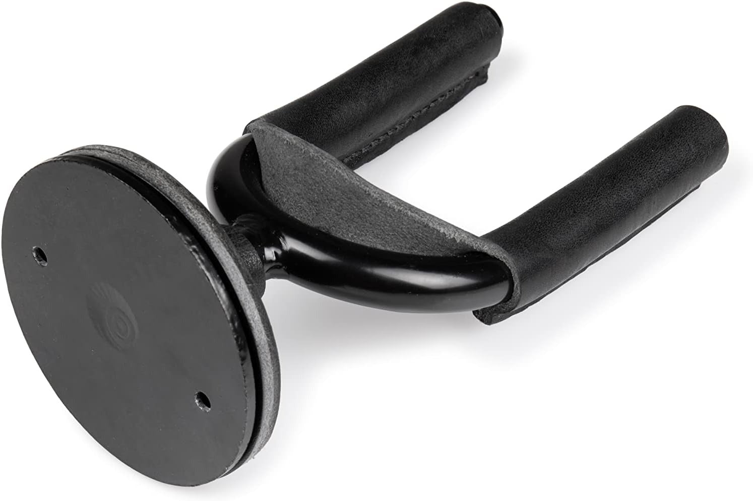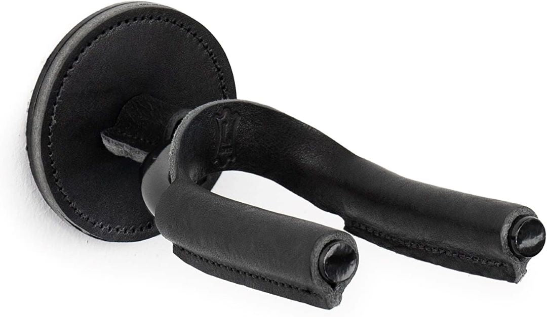 Forged Steel Guitar Hanger with Black Metal & Black Veg-Tan Leather Yoke Wraps