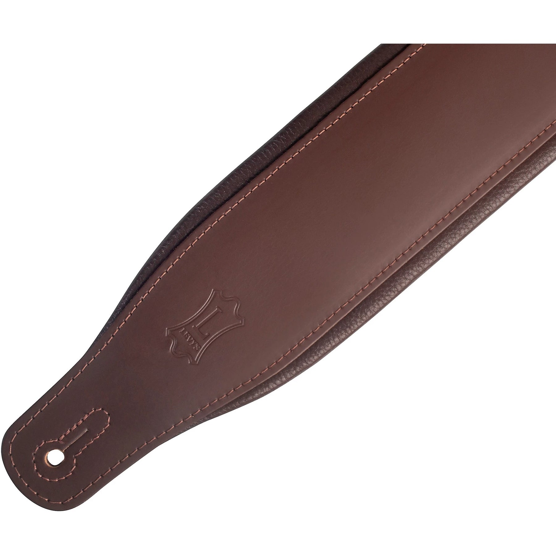Levy M26PD-DBR_DBR 3 inch Top Grain Leather Guitar Strap in Dark Brown With Foam Wrapped