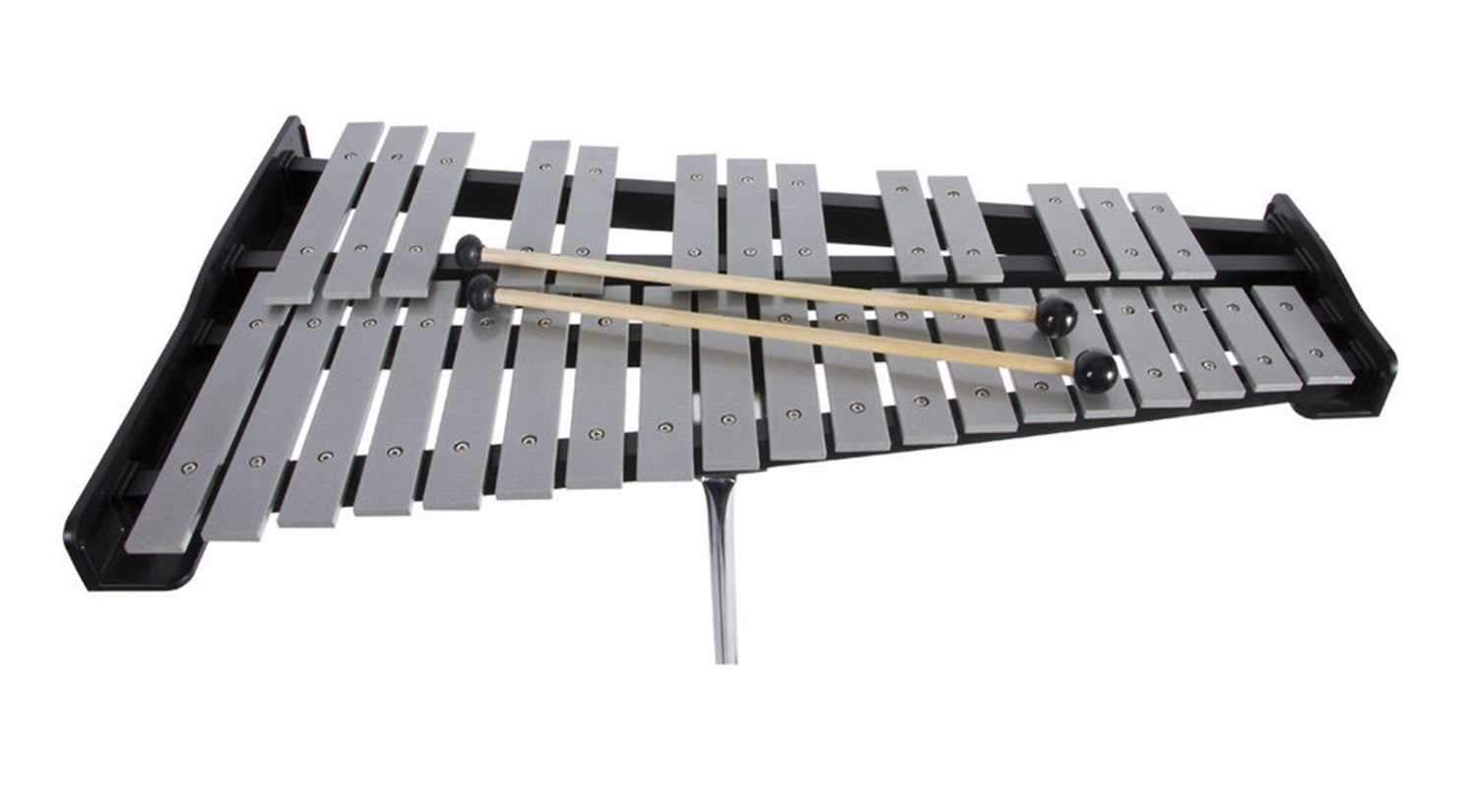 • Included:Β Β 2.5 Octave Bell Set, tripod stand with sheet music holder, 8" drum practice pad, 5B wood tip drumsticks, double-sided mallets, and carry bag