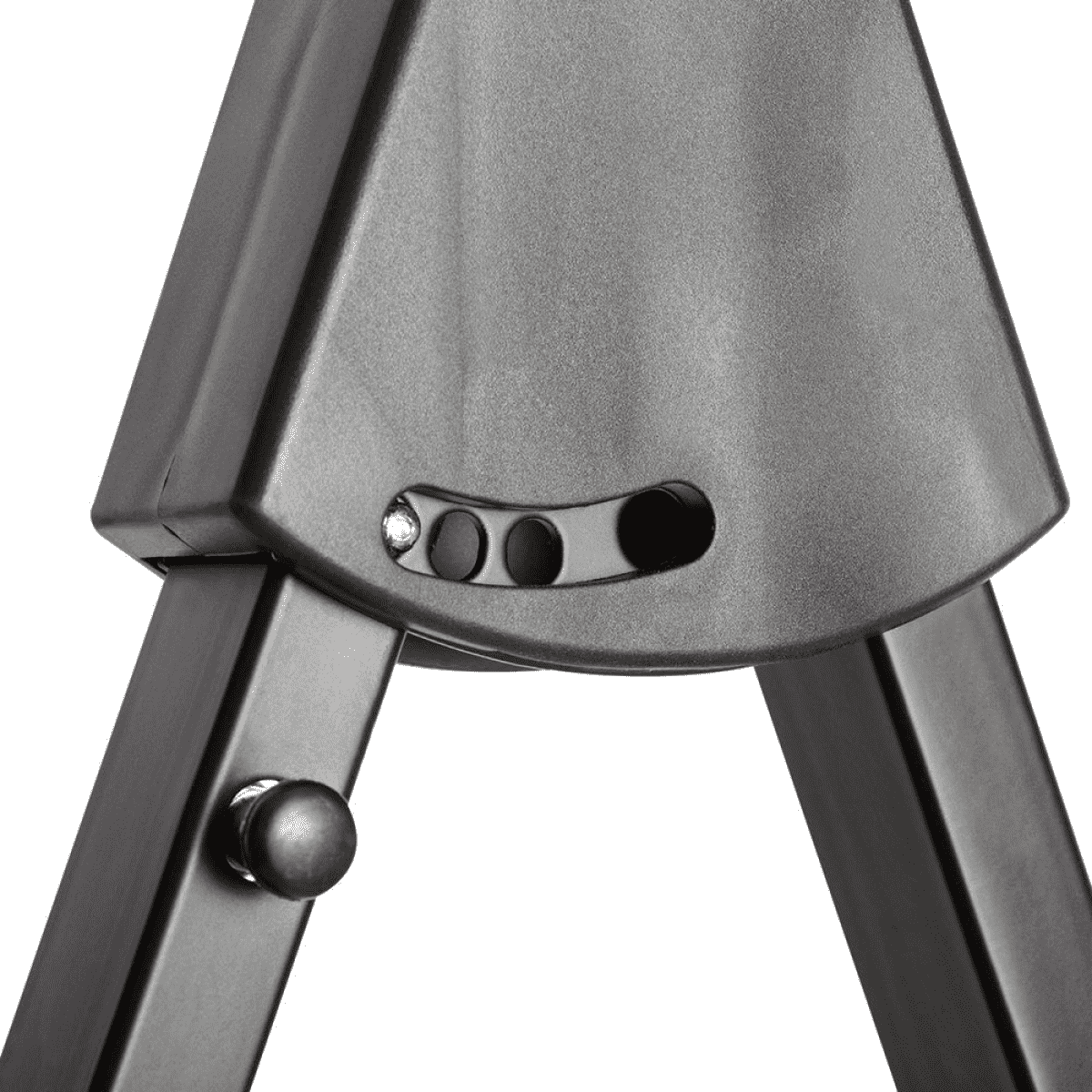 The On-Stage GS7364 -- durable, highly portable, sleek and super-stable -- takes road-worthy, studio-ready adaptability to a whole new level. Collapsible and flat-folding for ease of storage and transportation, the all-aluminum, black powder coated A-Frame's three position locking pin and stepped yoke accommodate both electric and acoustic guitars. Additionally, EVA foam padding protects instrument finish, while 10 degree tilt-back angle and splayed, tripod legs (complete with non-slip rubber feet) ensure secure placement. Perfect for production companies' ever-evolving stage plans and touring professionals alike, the overly-versatile GS7364 does only one thing you can't find in almost any other stand: just about everything.
